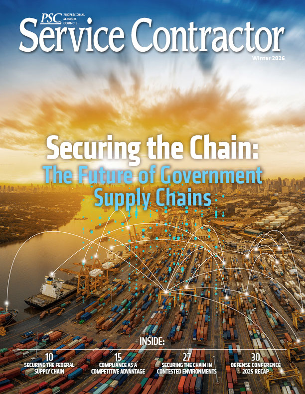 Published quarterly by the Professional Services Council, Service Contractor Magazine reaches more than 15,000 professionals across the federal services industry, including key members of Congress and agency leaders. The magazine features exclusive insights, expert commentary, and thought leadership from across the government contracting industry. Discover policy updates, member highlights, strategic trends shaping the future of federal services, and more.